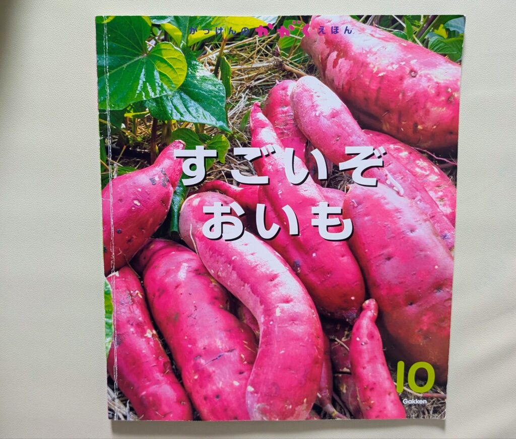 内容:大きくきれいなサツマイモの写真と一緒に、幼児でも読みやすい大きさの文字が書いてあります。身近な野菜について知ることができる素敵な1冊です!